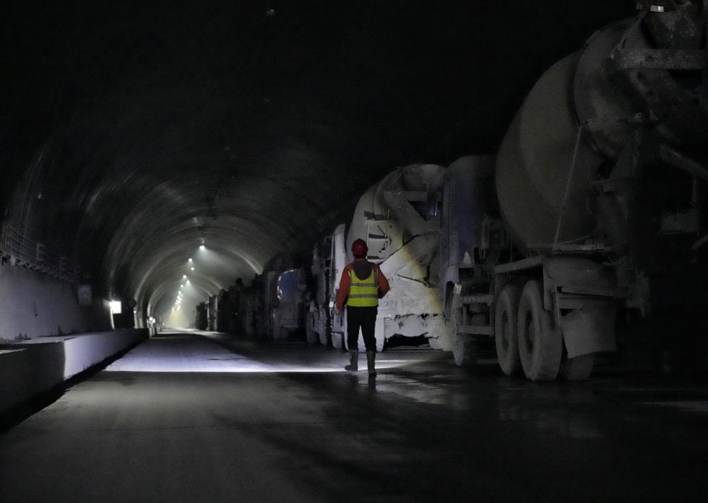 工人們在折多山隧道內巡查。新華社記者 劉坤 攝