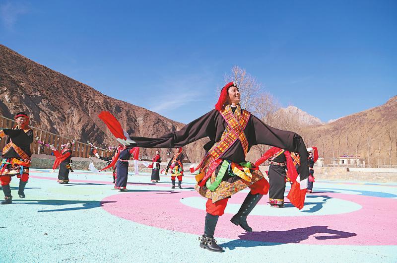 “來!我們再來一遍,兩個節目連排,拿足氣勢,跳出勁頭!”雙擁大吼一聲,男女隊員迅速歸位、整齊列隊。悠揚的伴奏響起,長袖凌空劃出弧線,舞步踏響青春節拍。豐收之后,農閑之時,迎春之日,鄉親們歡聚一堂、載歌載舞,這熱鬧祥和的場景,便是高原上最動人、最美好的時光。