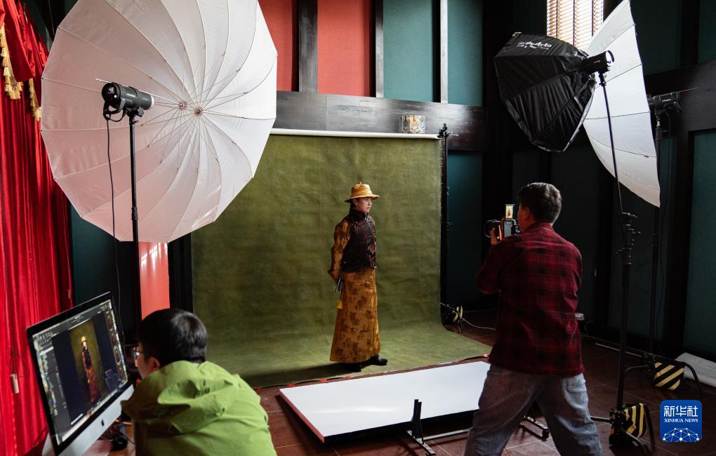 班珠丹塔身著藏裝進行棚拍(9月9日攝)。新華社記者 丁增尼達 攝