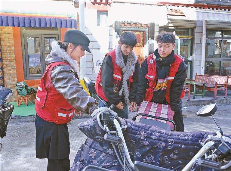 圖為冬日里,拉薩市城關區雪社區網格員正排查安全隱患,疏通社區道路,保障群眾便捷出行。本報記者 王敏 攝