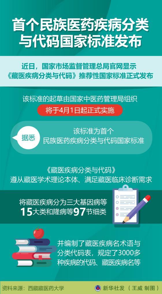 中國(guó)藏族網(wǎng)通訊 近日,國(guó)家市場(chǎng)監(jiān)督管理總局官網(wǎng)顯示《藏醫(yī)疾病分類與代碼》推薦性國(guó)家標(biāo)準(zhǔn)正式發(fā)布。記者從參與起草的西藏藏醫(yī)藥大學(xué)了解到,該標(biāo)準(zhǔn)的起草由國(guó)家中醫(yī)藥管理局組織,將于4月1日起正式實(shí)施。據(jù)悉,該標(biāo)準(zhǔn)為首個(gè)民族醫(yī)藥疾病分類與代碼國(guó)家標(biāo)準(zhǔn)。