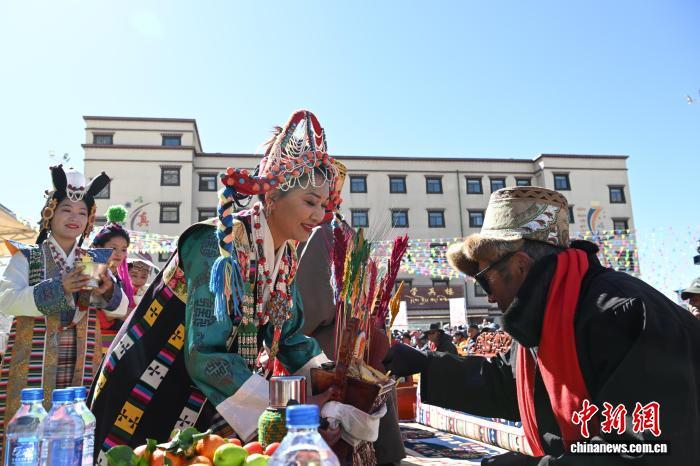 圖為羊湖民間藝術(shù)團演員表演舞蹈《嘎拉村的歡笑》。中新社記者 貢嘎來松 攝
