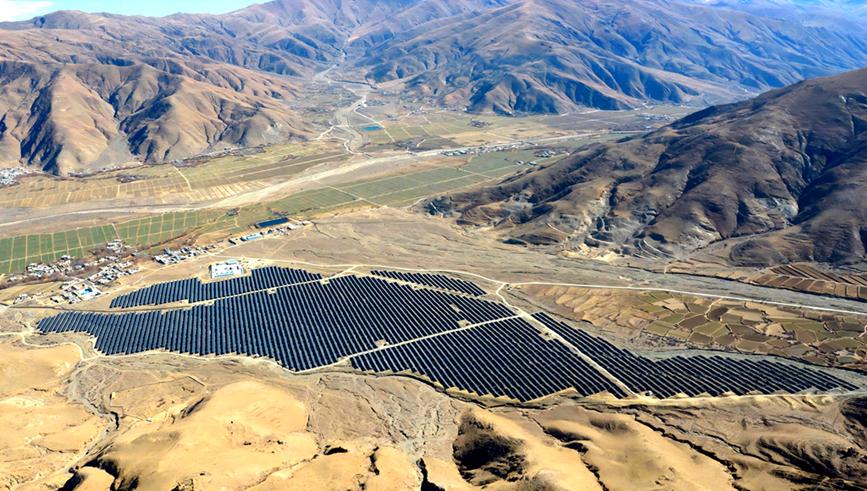 西藏自治區山南市扎囊縣扎其鄉羅堆村50兆瓦光伏治沙示范項目現場,電網設施有序運行,綠電由此輸送四方。人民網記者 吳雨仁攝