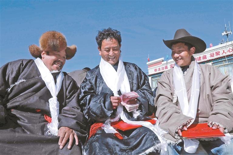 圖為群眾喜領分紅。本報記者 格桑倫珠 央金 攝影報道