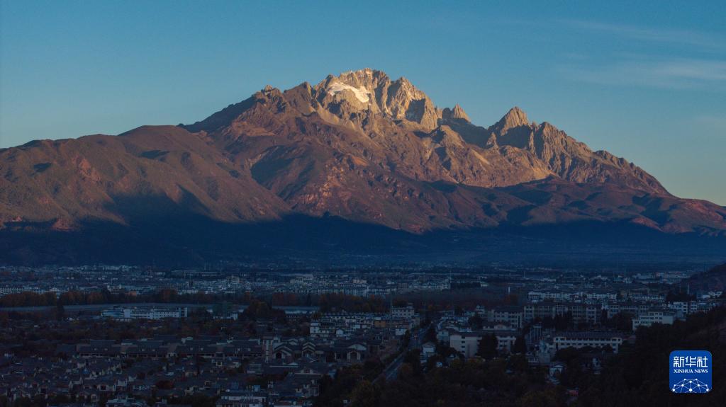 玉龍雪山位于云南省麗江市西北部,終年積雪,銀裝素裹。仲冬時節,隨著旭日東升,晨輝漸漸灑滿山巔,山下層林盡染,城市悄然蘇醒,一幅和諧靈動的生態畫卷徐徐展開。