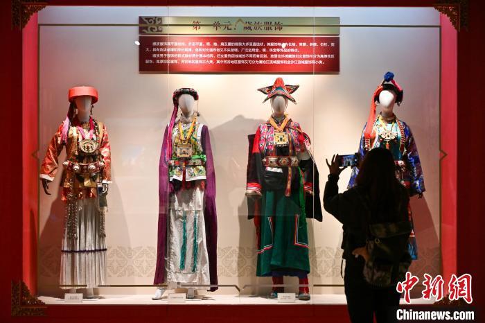 3月1日,迪慶藏族自治州博物館內展出的藏族服飾吸引游客。中新社記者 李嘉嫻 攝