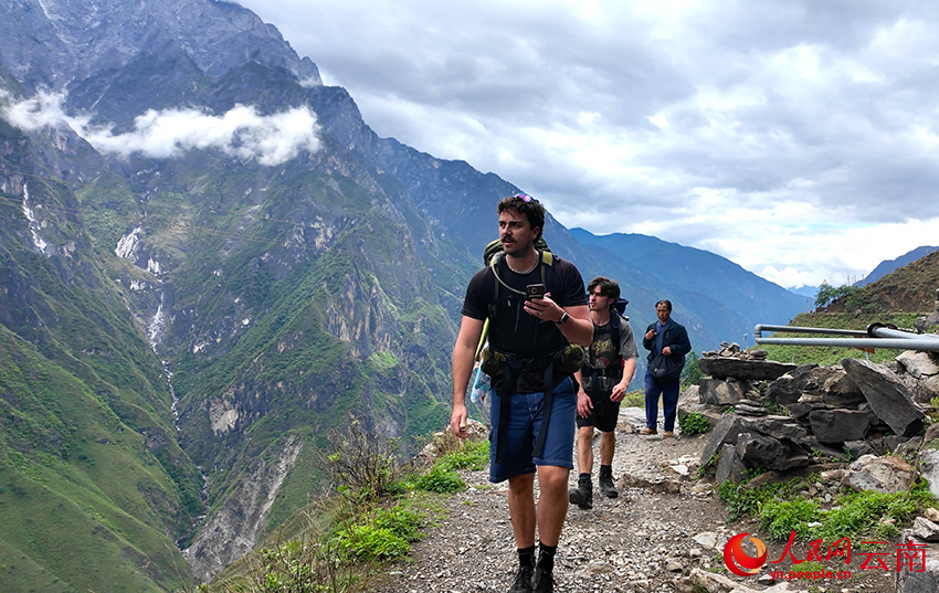 外國游客在虎跳峽徒步。人民網記者 莊志斌 攝