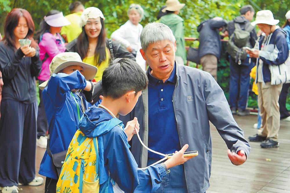維西傈僳族自治縣塔城鎮靜臥于白馬雪山下,氣候宜人,物產豐饒,更因滇金絲猴棲息而獨具魅力。上午9時,滇金絲猴國家公園內人頭攢動,觀猴臺上一派熱鬧景象:有人舉著相機屏息凝神,有人因近距離見到猴群而發出陣陣輕呼。“迪慶是一個集文化多樣性、生物多樣性、農作物多樣性、景觀多樣性于一體的地方,非常值得深度探訪。”人群之中,靈長類動物研究專家龍勇誠教授為研學少年們講述他與“雪山精靈”的不解之緣,“現在大家能近距離看到滇金絲猴,是保護區工作人員、科研團隊以及社會各界共同呵護的成果。”