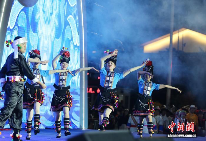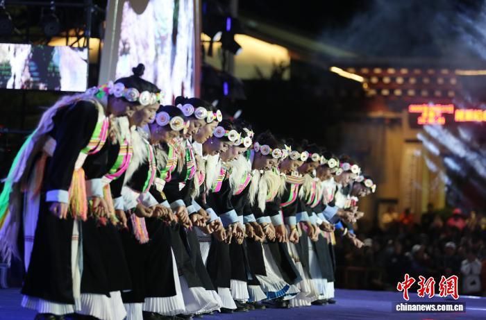 9月27日晚,迪慶州香格里拉市代表隊表演舞蹈《阿卡巴拉》。中新社記者 黃興鴻 攝