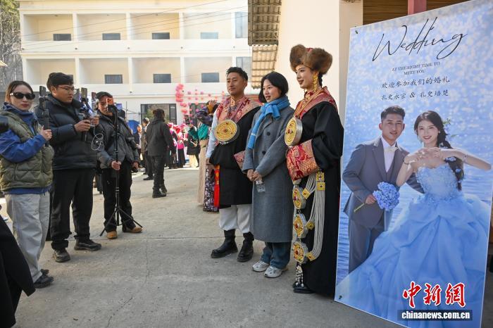 在香格里拉倉(cāng)覺(jué)村24日舉行的一場(chǎng)傳統(tǒng)藏式婚禮上,新娘扎史永宗和新郎扎史培楚身著藏式婚服,迎接他們的不僅有親友,還有從手機(jī)屏幕里“走”出來(lái)的各地粉絲。