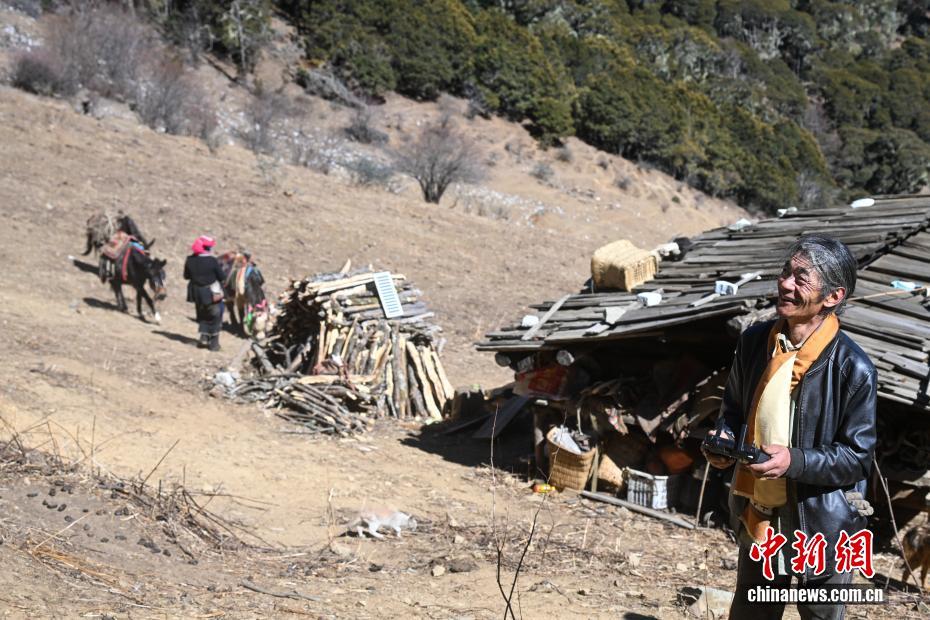 圖為1月27日,丹增培楚在牧場用無人機(jī)搜尋跑遠(yuǎn)的牦牛和騾馬。中新社記者 李嘉嫻 攝
