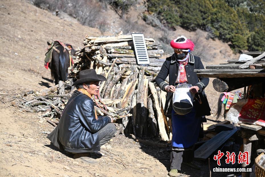圖為1月27日,七林央宗(右)為剛到達(dá)牧場的丹增培楚準(zhǔn)備午飯。中新社記者 李嘉嫻 攝