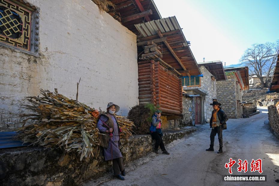 圖為1月26日,丹增培楚在尼汝村中與路邊歇息的村民閑聊。中新社記者 李嘉嫻 攝