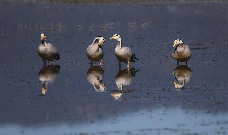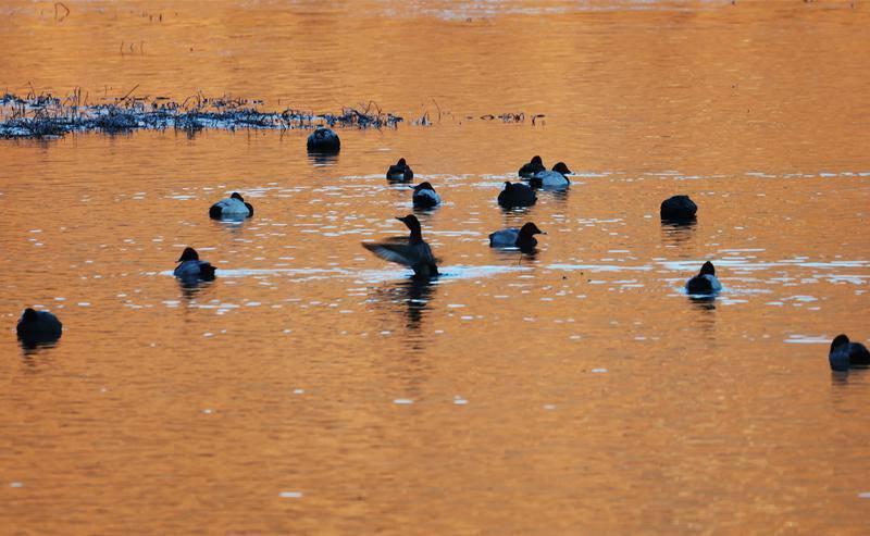 各類野鴨在湖中巡游,展現出一幅萬物共生自然和諧的山水畫卷。