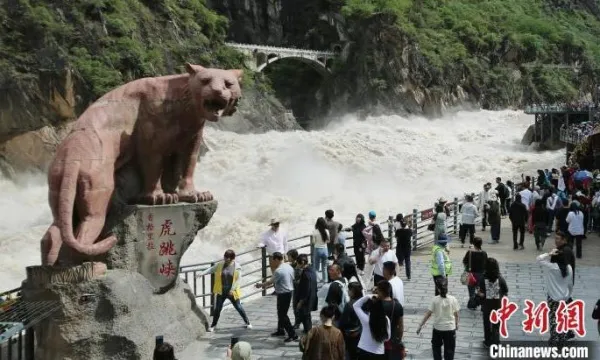 云南香格里拉虎跳峽景區江水澎湃吸引游客