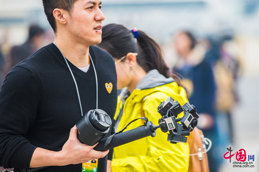 3月3日,中國人民政治協(xié)商會議第十二屆全國委員會第四次會議在北京人民大會堂開幕。步入會場前,各媒體記者紛紛亮出“武器”,各種新科技和新裝備引人注目,成為一道獨(dú)特的風(fēng)景線。
