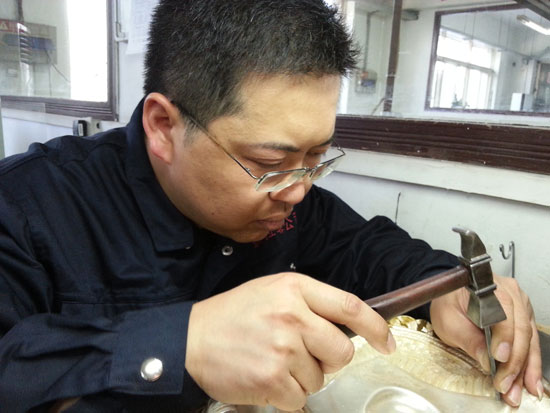 純銀絲巾果盤——北京APEC期間,我國送給各國元首的國禮,讓世人都被中國古老的鏨刻工藝驚艷。這就是鏨刻師孟劍鋒的作品。
