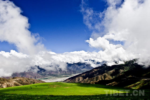 春天的曲水,草剛剛變青,藍天白云下顯得平靜又自由。攝影:易繼權