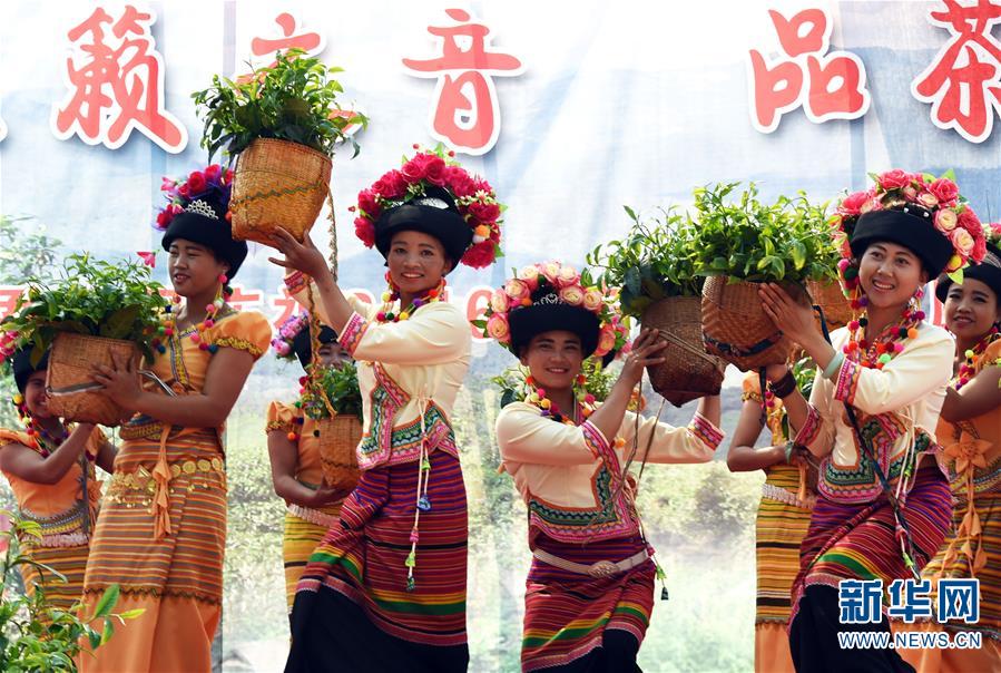 4月9日,老曼峨寨的布朗族村民為群眾表演原生態(tài)節(jié)目《采茶》。當日,云南省西雙版納傣族自治州勐??h布朗山布朗族鄉(xiāng)萬余布朗族同胞在該鄉(xiāng)老曼峨山寨歡度布朗族傳統(tǒng)節(jié)日“桑康節(jié)”。村民們身著節(jié)日盛裝,載歌載舞,祈福風調(diào)雨順,喜慶春茶豐收。i5T中國藏族網(wǎng)通