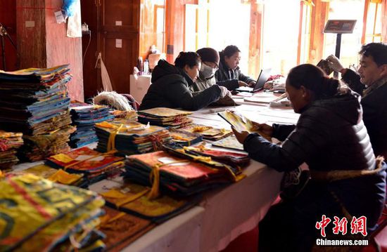 西藏布達(dá)拉宮館藏文物豐富,包含各類(lèi)古籍文獻(xiàn),總量約達(dá)10萬(wàn)余件。2013年底,根據(jù)中央政府對(duì)所有可移動(dòng)文物進(jìn)行普查、登記、建檔的要求,西藏啟動(dòng)此項(xiàng)工作,摸清全區(qū)可移動(dòng)文物的“家底”。目前,布達(dá)拉宮已經(jīng)完成17000余件可移動(dòng)文物建檔登記工作。由于專(zhuān)業(yè)技術(shù)人員缺乏,此項(xiàng)工作進(jìn)度較平緩,今年將爭(zhēng)取完成布達(dá)拉宮兩萬(wàn)件文物的普查建檔工作。西藏布達(dá)拉宮距今已有1300多年的歷史,是中國(guó)首批全國(guó)重點(diǎn)文物保護(hù)單位。李林 攝