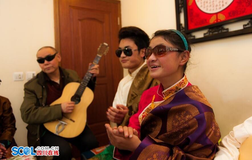 上完課,恩波就穿上白大褂,到樓下的按摩診所工作。而5個(gè)藏族盲人孩子則會(huì)在教室里做作業(yè),有時(shí)也要去學(xué)按摩技能。休息的時(shí)候,大家還會(huì)彈彈吉他、唱唱藏歌,對(duì)生活充滿了樂觀。“彈吉他、吹葫蘆絲、拉手風(fēng)琴,都是爸爸教我們的。”17歲的藏族盲人孩子買志巴說。恩波出生在阿壩州紅原縣壤口鄉(xiāng)一個(gè)牧民家庭,只上過小學(xué)四年級(jí)。1981年,一次意外事故,導(dǎo)致他雙目失明,從此與光明絕緣。在成都市牛市口一個(gè)盲人按摩醫(yī)院學(xué)習(xí)工作期間,他發(fā)現(xiàn),很多藏族盲人學(xué)生對(duì)漢語(yǔ)相對(duì)陌生,學(xué)習(xí)效率大打折扣,一個(gè)學(xué)期能完成的學(xué)業(yè),卻要連學(xué)兩期才勉強(qiáng)過關(guān)。“造成這樣的學(xué)習(xí)困境,都是一個(gè)語(yǔ)言障礙所致。”恩波說,路易斯·布萊爾發(fā)明了“六點(diǎn)制凸點(diǎn)體系”盲文,我也希望成為藏族的路易斯·布萊爾,創(chuàng)編一套藏文盲文,讓藏區(qū)盲人學(xué)習(xí)更容易、更方便。