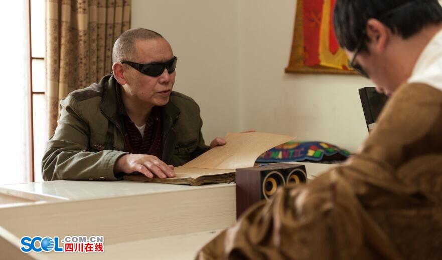 4月23日上午10時(shí),阿壩州馬爾康市步行街,一個(gè)不足8平方米的簡(jiǎn)陋房間里,5個(gè)藏族盲人孩子正在用雙手“閱讀”藏文詩(shī)歌,之后還熟練地用錐筆、字板在盲文紙上進(jìn)行寫作練習(xí)。為他們上課的是一位藏族盲人按摩師,名叫恩波,今年已63歲,孩子們都親切地叫他“爸爸”。這5個(gè)藏族盲人孩子,都在20歲以下,是恩波從阿壩縣、壤塘縣招來的。眼下,他正在免費(fèi)教孩子們學(xué)習(xí)藏文盲文、盲人計(jì)算機(jī)技能操作、盲人按摩等知識(shí)和技能。
