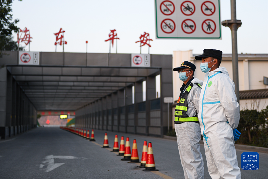 10月22日,青海海東市平安區高速出口旁,疫情防控人員正在執勤。 新華社記者 吳剛 攝