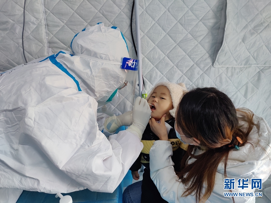 青海省人民醫(yī)院醫(yī)務人員為平安區(qū)幼兒進行核酸采集。新華網發(fā) (朱建軍 攝)