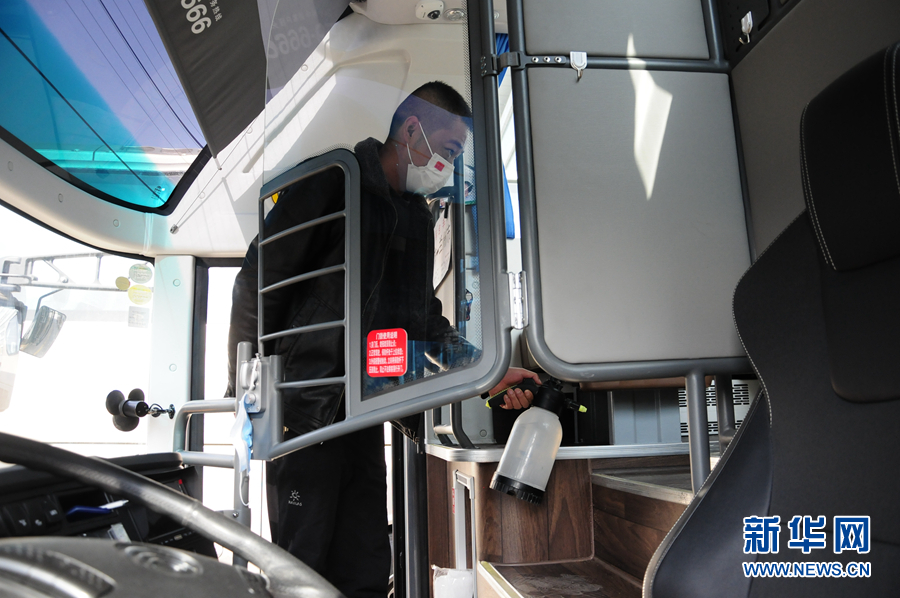 新華社西寧10月31日電 近日,西寧出現3名新冠肺炎病毒核酸檢測陽性人員。西寧汽車客運中心站司機老袁拿起裝滿消毒液的噴壺,正給自己的“愛車”認真消殺。