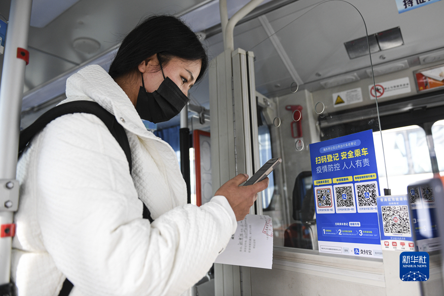 11月16日,在西寧客運(yùn)中心站內(nèi),一名乘客掃碼乘車。新華社記者 吳剛 攝