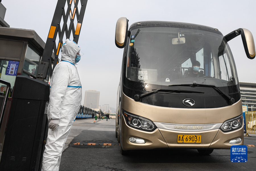 11月16日,一輛客運(yùn)班車駛離西寧客運(yùn)中心站。新華社記者 吳剛 攝