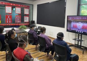 社區工作人員收聽收看省第十四次黨代會直播盛況。記者 倪曉穎 攝