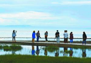 8月11日,記者一行走進海北藏族自治州的青海湖仙女灣景區,一望無際的湖面與天邊自然交匯,宛如鏡面的湖泊、自由嬉戲的禽鳥、倒映著碧藍的天空透露著原生態之美。仙女灣是青海湖裸鯉、漁鷗、棕頭鷗、斑頭雁等數十種鳥類的重要棲息地,每年春、秋遷徙期有大量水鳥在此停歇,同時這里也是魚的家園、鳥的天堂。本報記者 董志勇 李慶玲 石成硯 欒雨嘉 攝... [詳情]