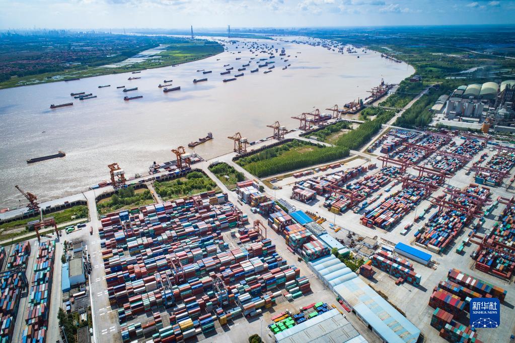 船舶在武漢陽邏港區水域行駛(2018年8月13日攝,無人機照片)。新華社記者 肖藝九 攝Alz中國藏族網通