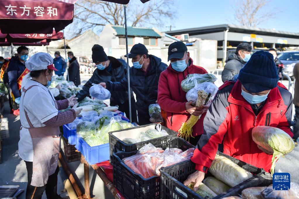 北京前門平房區居民在選購蔬菜(2020年3月13日攝)。新華社記者 彭子洋 攝