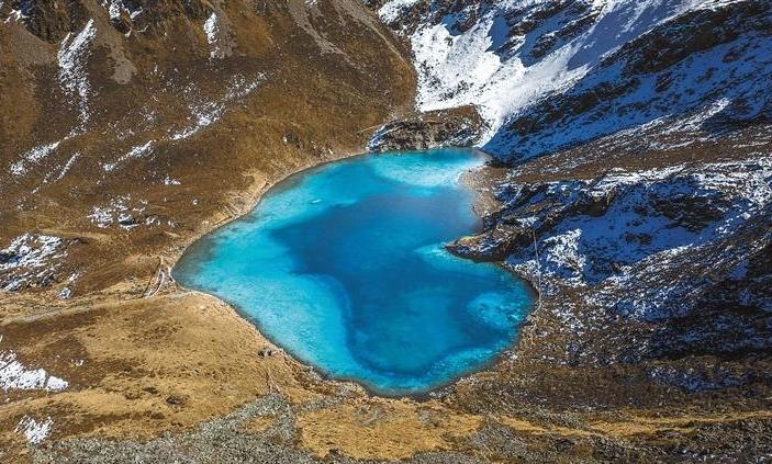 古如拉錯,這個被自然之神精心雕琢的瑰寶,在冬日的陽光下,顯得神圣而純凈。