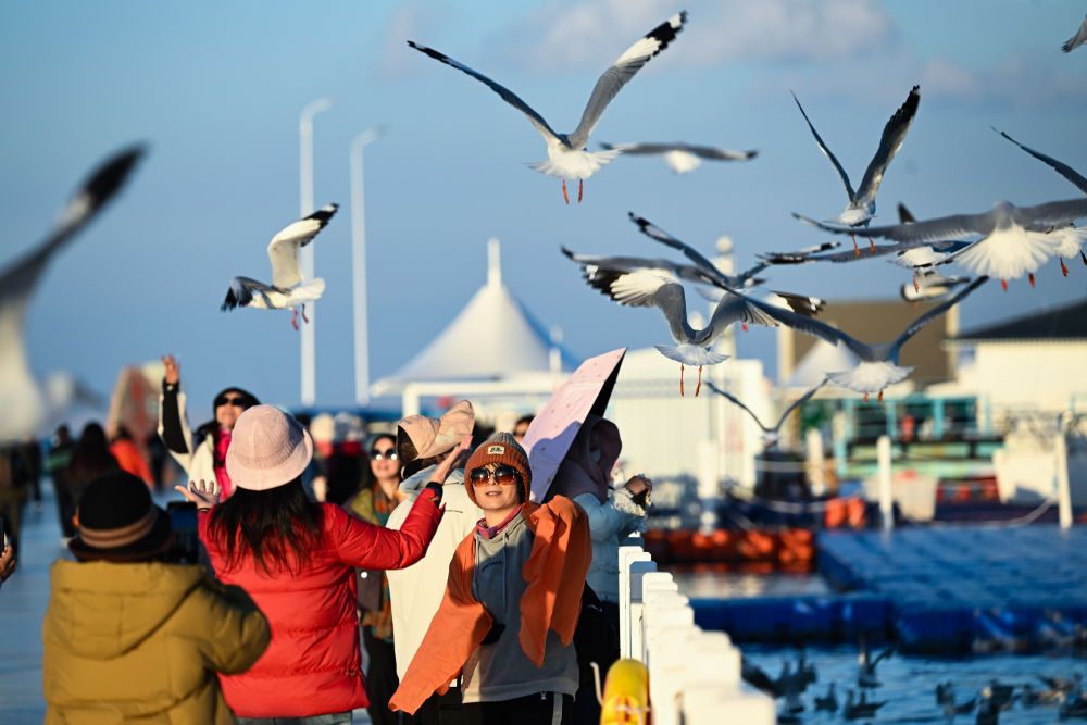 游客在青海湖二郎劍景區(qū)游玩。新華社記者 張龍 攝