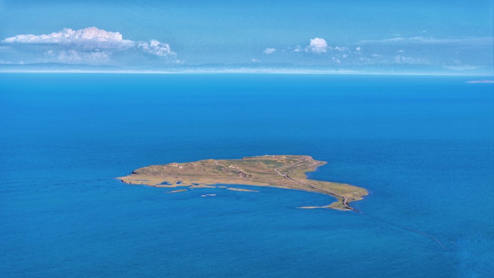 在青海省海北藏族自治州剛察縣拍攝的青海湖(無人機(jī)照片)。新華社記者 白瑪央措 攝