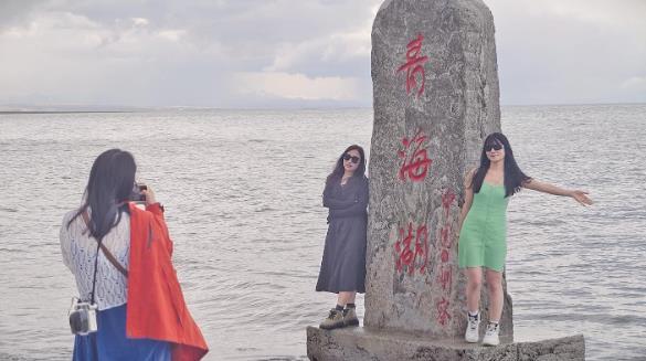 游客們沉浸于高原夏日的純凈與美好,紛紛用鏡頭記錄下這份美景?!暗谝淮蝸砬嗪:|闊的湖面和蔚藍的湖水讓我們深感震撼!”來自省外的游客感慨道。景區工作人員也熱情回應:“青海湖四季都很美,歡迎你們再來!”