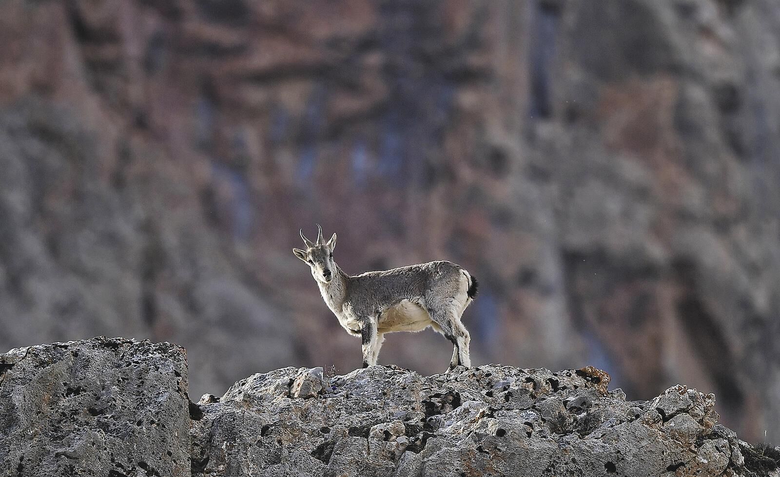 目光投向更險峻的山巒,生命的堅韌則以另一種形式展現。巖羊,這些攀巖高手,是陡峭山崖上跳躍的精靈。它們擁有與巖石幾乎融為一體的保護色,在近乎垂直的崖壁上如履平地,如同褐灰色的溪流在嶙峋的亂石間蜿蜒流淌,構成一幅動與靜完美結合的山野畫卷。