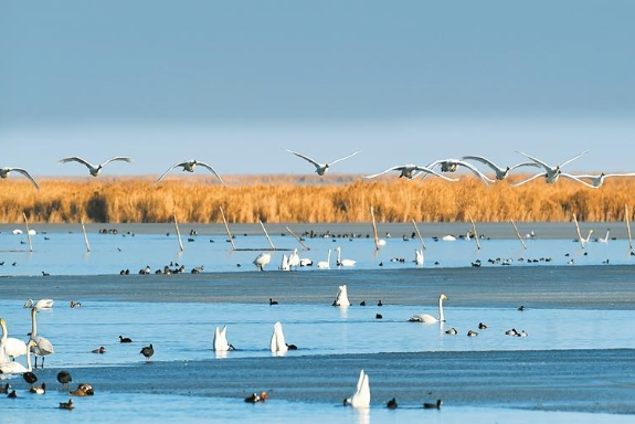 察爾汗鹽湖濕地成為鳥類家園。馬旭 攝