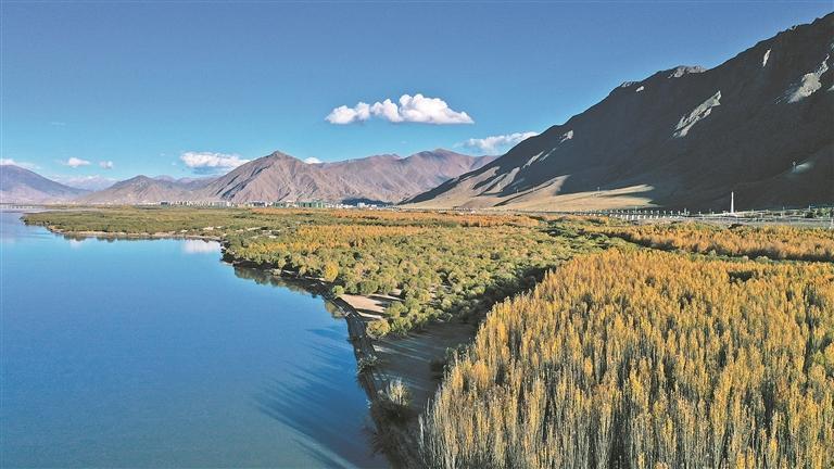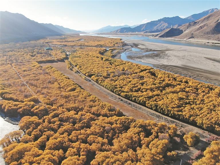 臨近山南市區的雅魯藏布江沿岸綠意蔥蘢的人造林(資料圖片)。 西藏日報記者 巴桑旺姆 攝