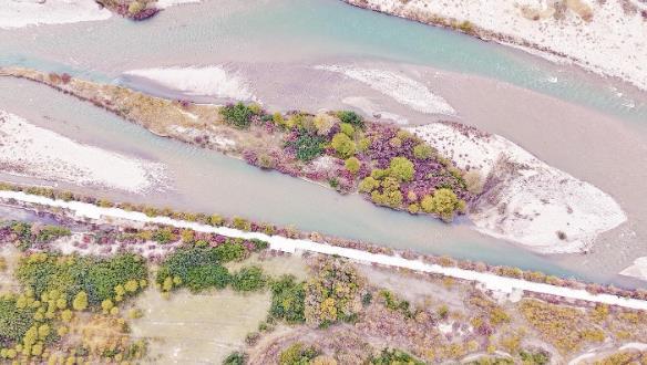 剛察縣沙柳河濕地一處淺灘形似一條大魚。