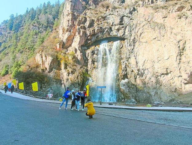 張麗停車進入景區,徒步近5公里后折返,在瀑布下拍照留念,隨后前往景區農家院品嘗特色美食。“農家院今年剛開業,游客既能享用農家美味,又能為村集體經濟添一份收入。”李生全笑瞇瞇道。