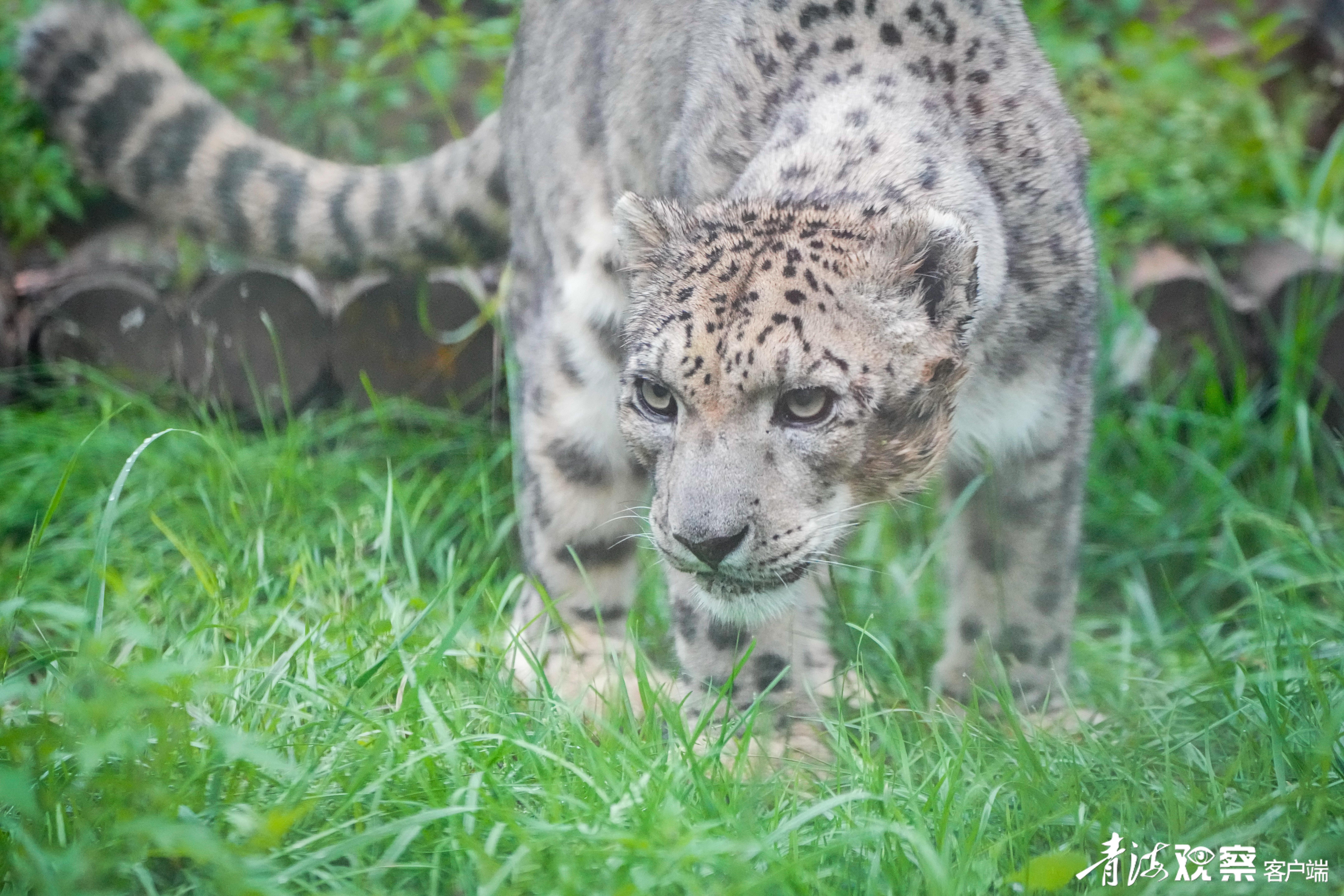 生活在寒冷地區的雪豹,體長約100-130厘米,尾長80-100厘米,并長有細軟厚密的毛發。它有兩層被毛,一層是起保溫作用的濃密短毛,另有一層5厘米的長毛,所以看上去胖胖的。