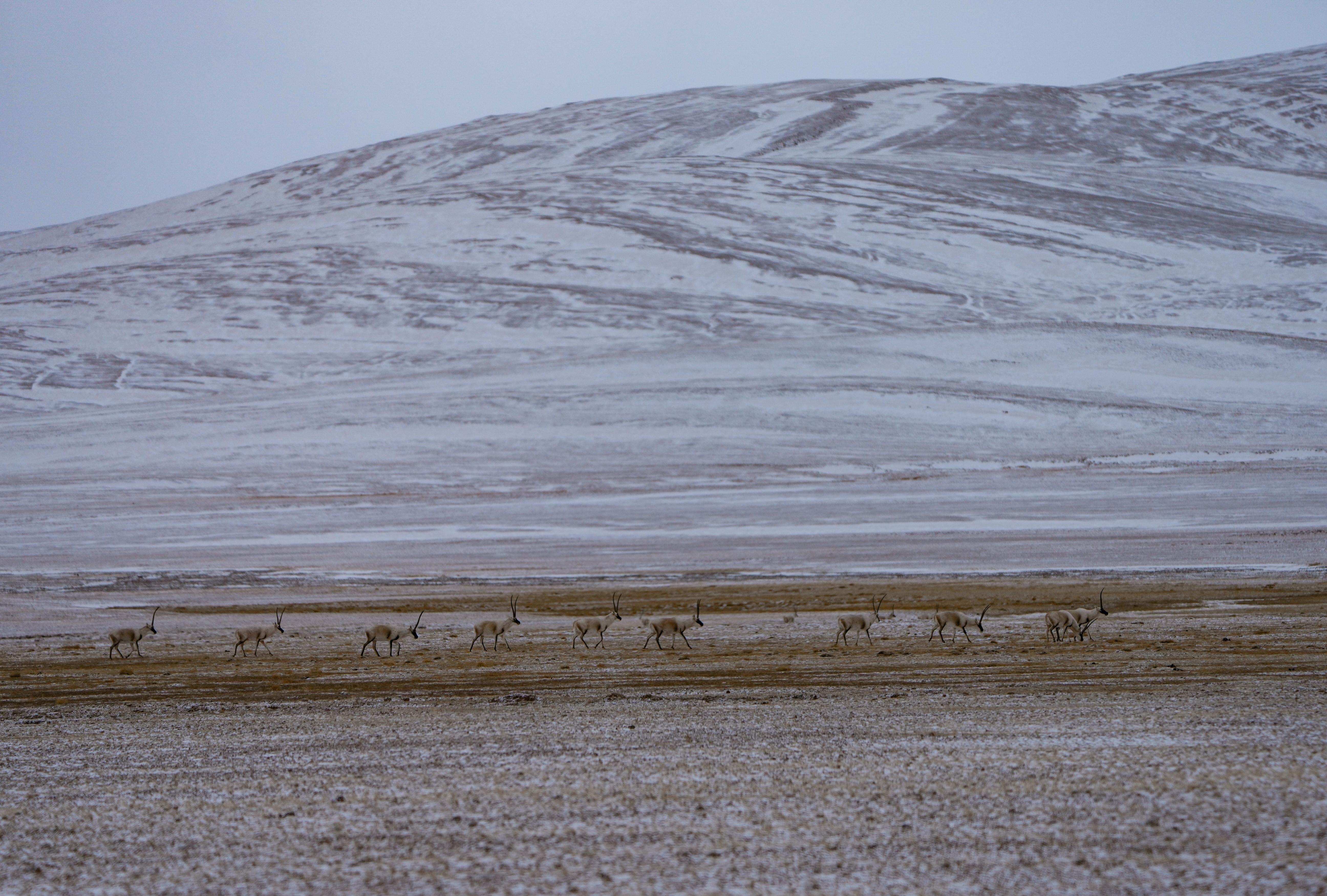 生活在三江源國家公園唐北片區的藏羚羊(2月1日攝)。新華社記者 儲國強 攝
