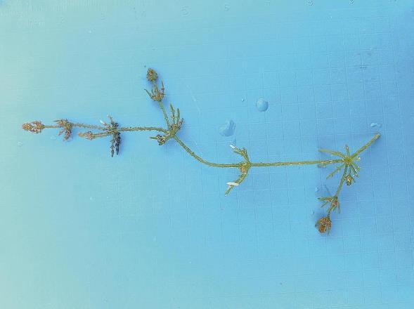 2023年7月至8月,省林業(yè)和草原局組織海西蒙古族藏族自治州都蘭縣林業(yè)和草原局、青海師范大學(xué)生命科學(xué)學(xué)院蘇旭教授團隊,在開展“青海野生單子葉植物種質(zhì)資源調(diào)查及其多樣性評價項目”的野外考察和群體遺傳學(xué)采樣時,于都蘭縣宗加鎮(zhèn)以北的荒漠草原發(fā)現(xiàn)一種形態(tài)較為特殊的藻類植物。通過查閱《中國植物志》《青海省植物志》等書籍,根據(jù)形態(tài)特征并經(jīng)有關(guān)專家核實,確認為擬球狀輪藻,為青海省植物分布新記錄。