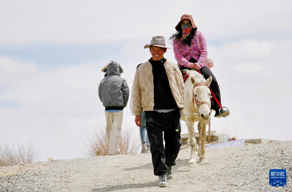羊卓雍錯北岸的村民為游客提供騎馬服務(4月5日攝)。新華社記者 張汝鋒 攝