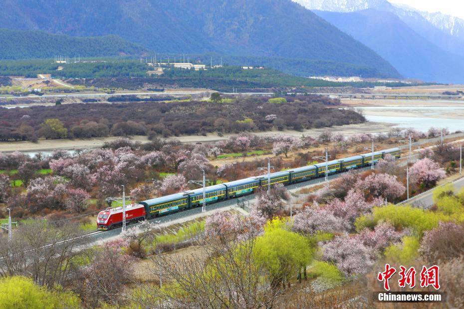 四月伊始,拉林鐵路沿線的桃花迎來了盛開時節,藍天白云下,一朵朵桃花漲紅了臉頰,與遠處的雪山交相輝映,吸引了不少游客來感受高原春天的獨特魅力。當一列列火車穿過花海,映入眼簾的皆是滿山遍野的桃花,讓人仿佛置身于秀美的江南之中。