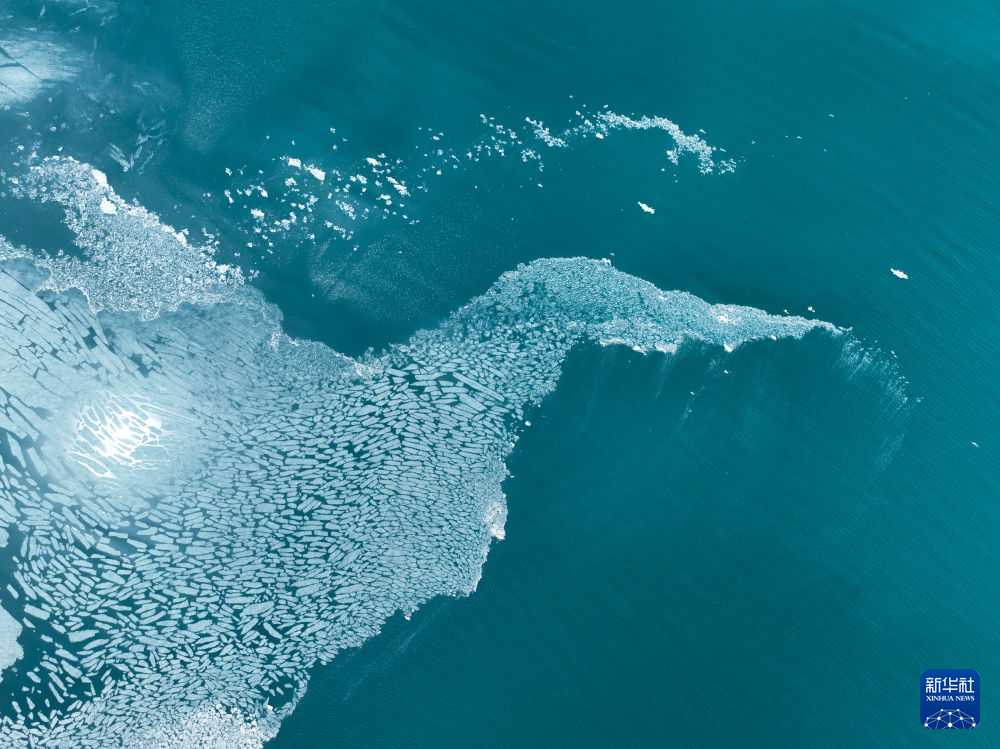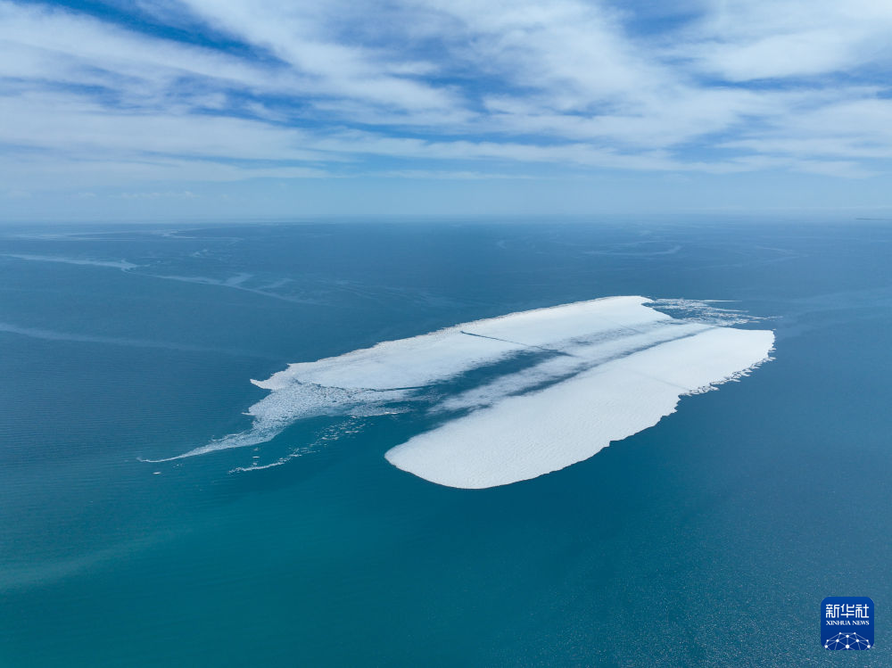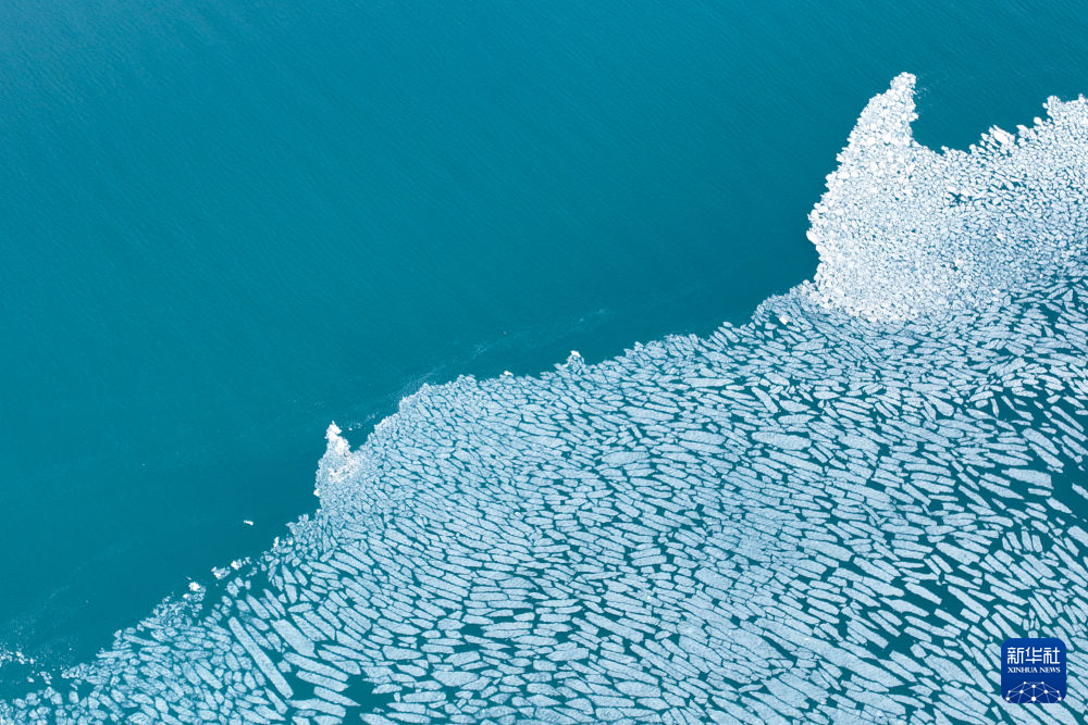 這是4月11日在青海湖拍攝的未融化的湖冰(無人機照片)。新華社記者 張龍 攝